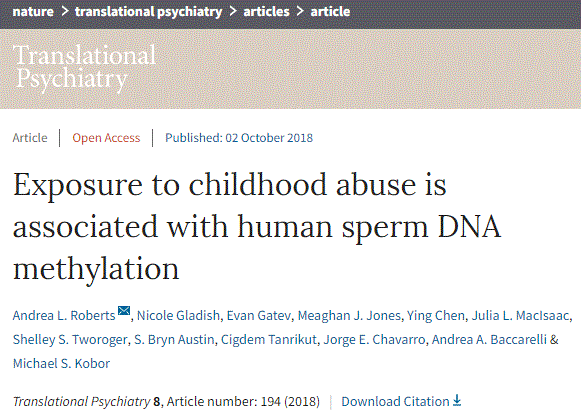 追い打ちをかけるように、子供の時の被害が、大人になった時に精子のDNAの構造を変化させる形で、でてきてしまうという論文を見つけましたので、ご紹介いたします。